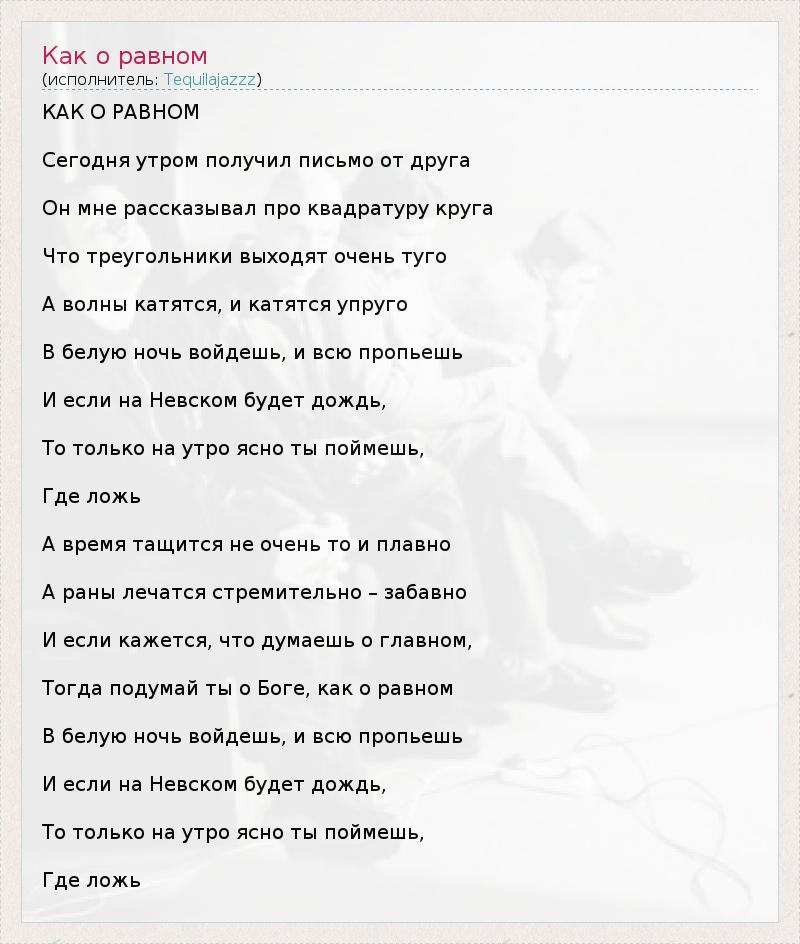 А как ты думаешь, о чем песня "Как о равном" ?