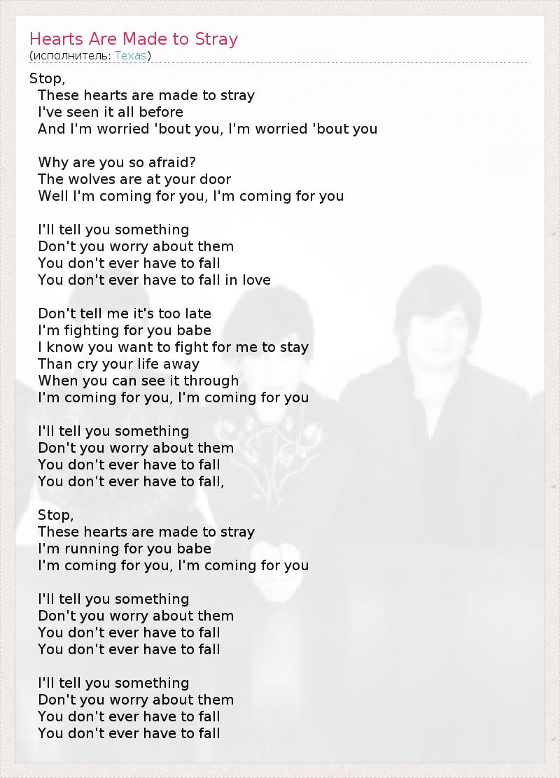 ГлавнаяИсполнителиTexasHearts Are Made to Stray