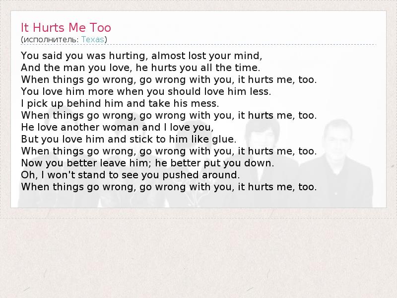 А как ты думаешь, о чем песня "It Hurts Me Too" ?