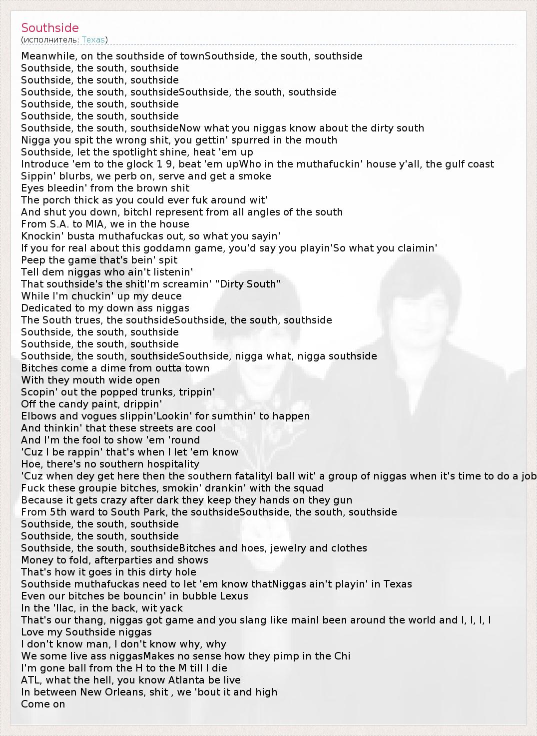 А как ты думаешь, о чем песня "Southside" ?