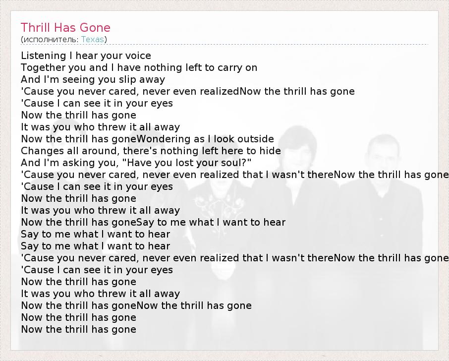 А как ты думаешь, о чем песня "Thrill Has Gone" ?