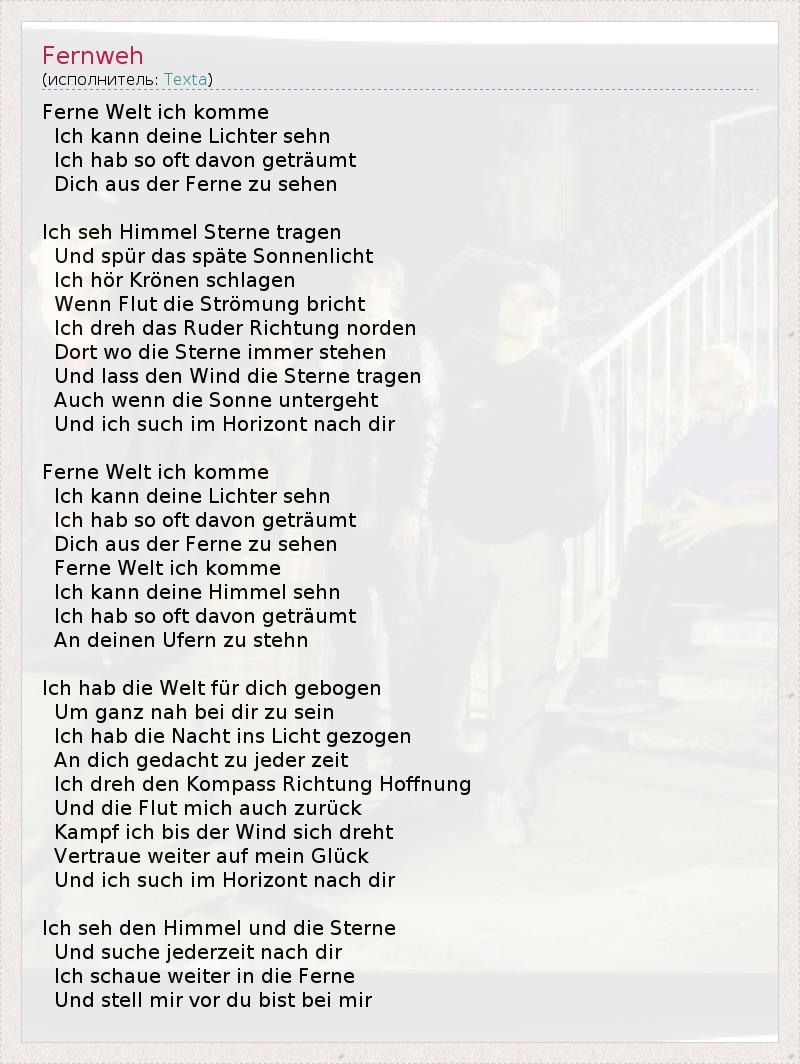 А как ты думаешь, о чем песня "Fernweh" ?