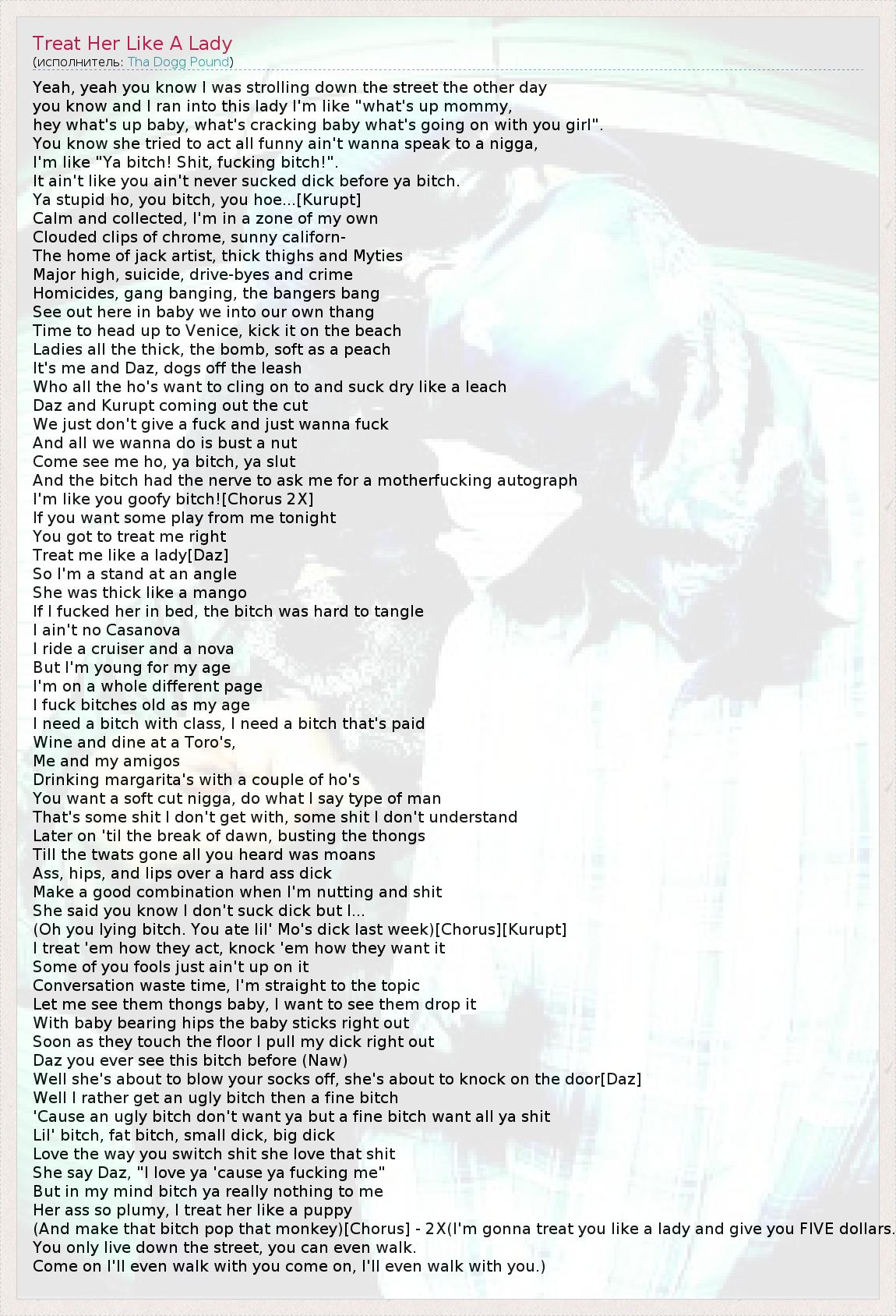 А как ты думаешь, о чем песня "Treat Her Like A Lady" ?