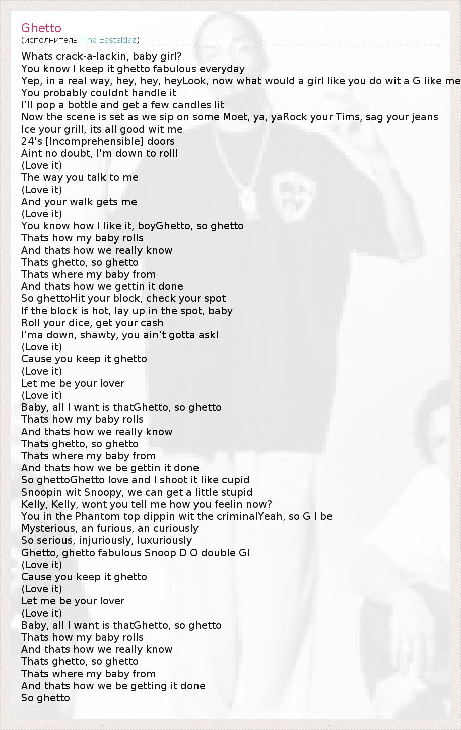 А как ты думаешь, о чем песня "Ghetto" ?
