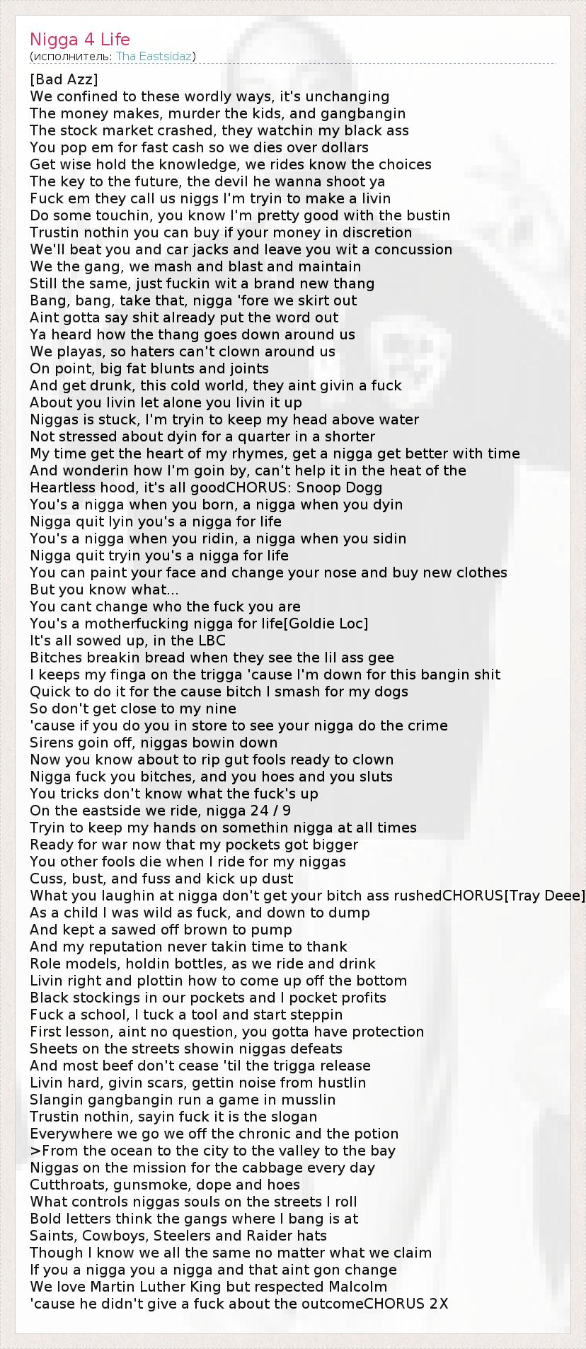 А как ты думаешь, о чем песня "Nigga 4 Life" ?