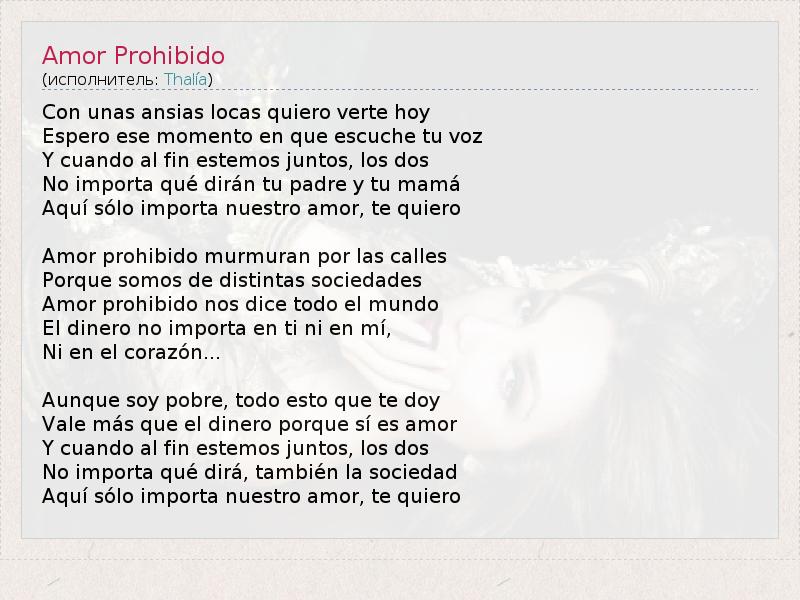 А как ты думаешь, о чем песня "Amor Prohibido" ?