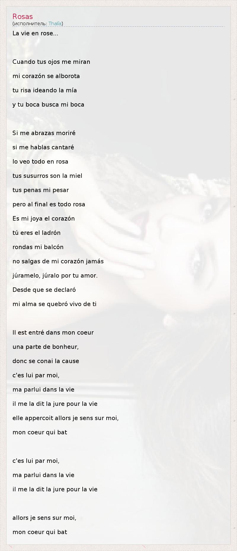 Это интересно:Мексиканская принцесса и королева карнавалов, популярная певица и любимая актриса милых сердцу теленовелл. Все это Thalia - молодая, красивая, талантливая, переполненная желанием работать.Подобно одной из муз, которые вдохновляли поэтов древности, мексиканская певица и актриса Талия завораживает миллионы фанатов всего мира. В 90-х годах от Аргентины до Йемена, королева мыльных опер,... продолжение