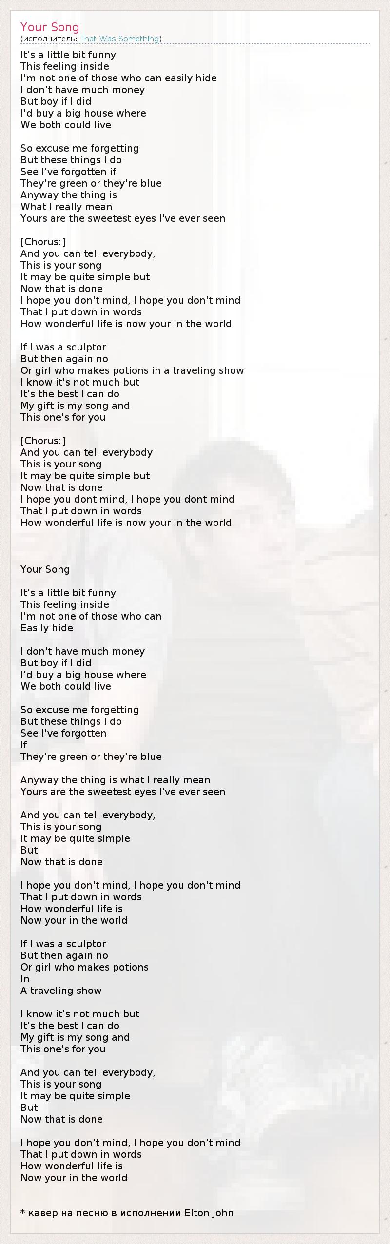 А как ты думаешь, о чем песня "Your Song" ?
