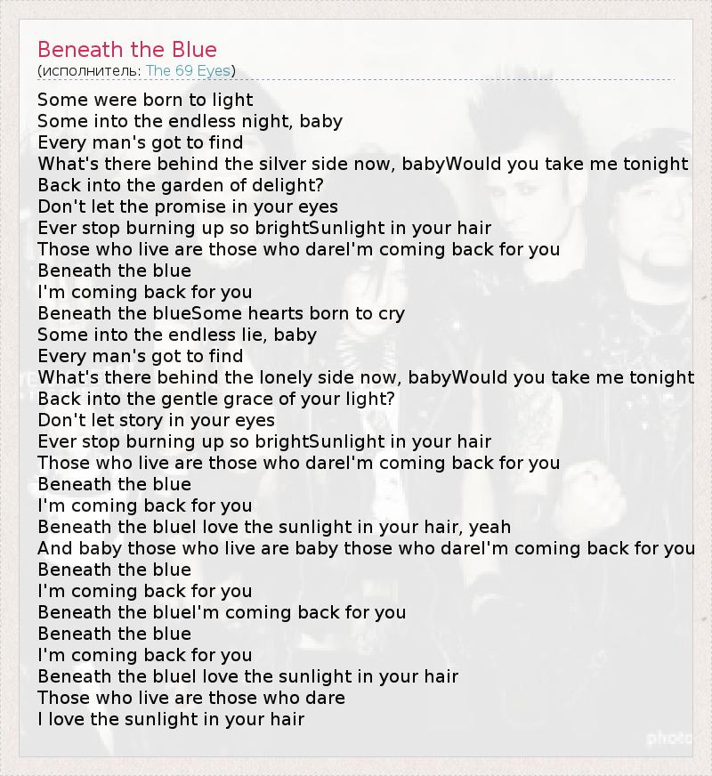 А как ты думаешь, о чем песня "Beneath the Blue" ?