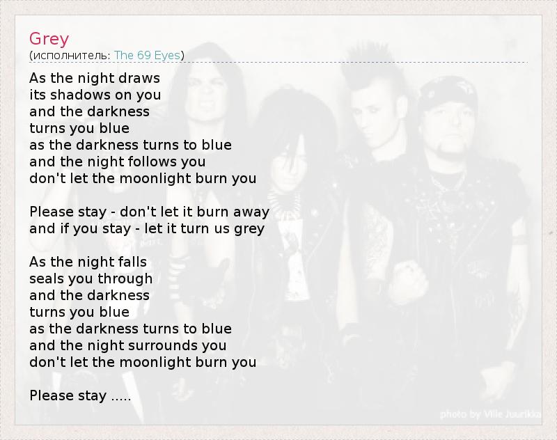 Это интересно:The 69 Eyes — финская англоязычная рок-группа. В 1990 году в Хельсинки гитарист Бази и начинающий певец Юрки69 решают организовать свою группу. До сих пор Юрки сочиняет слова для песен, а Бази - музыку. Впоследствии к ним присоединились Тимо-Тимо (ритм-гитарист), Арчи... продолжение