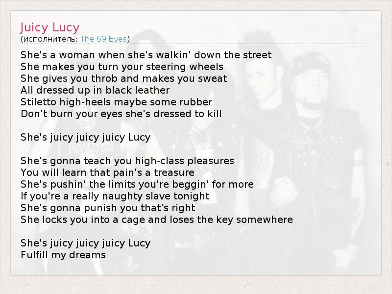А как ты думаешь, о чем песня "Juicy Lucy" ?