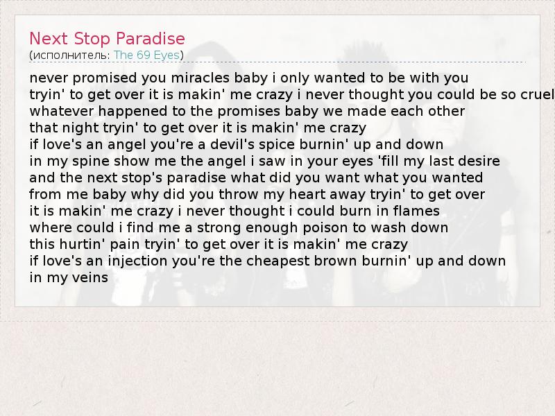 А как ты думаешь, о чем песня "Next Stop Paradise" ?