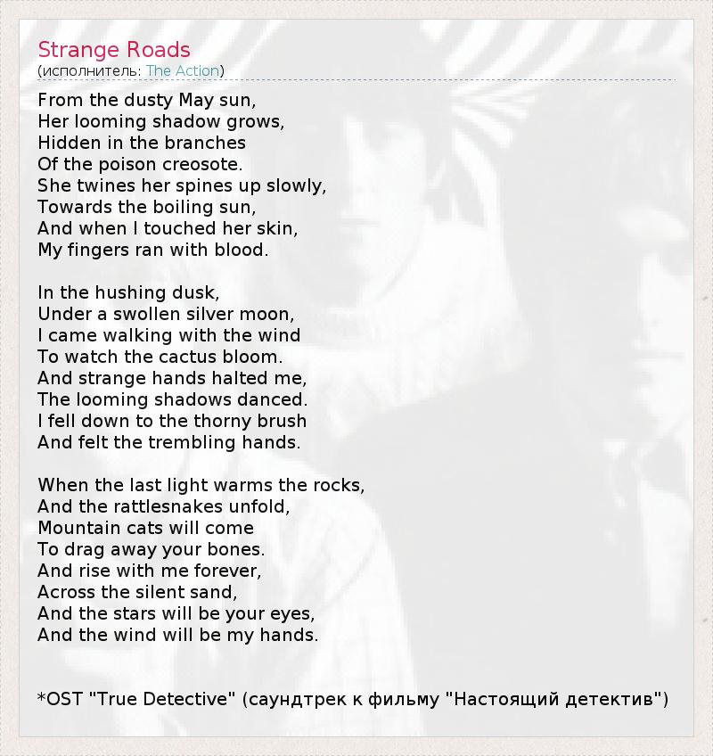 А как ты думаешь, о чем песня "Strange Roads" ?