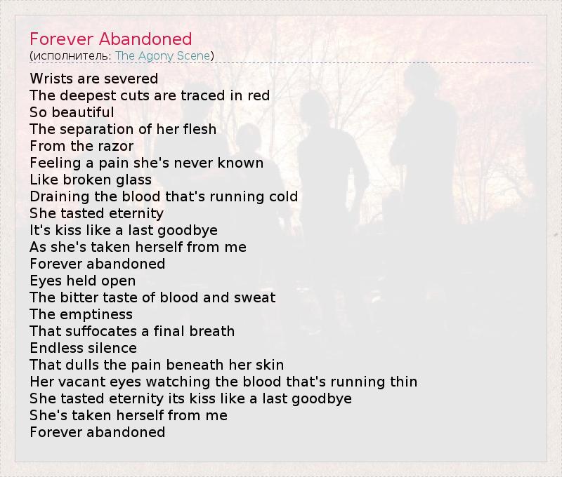 А как ты думаешь, о чем песня "Forever Abandoned" ?