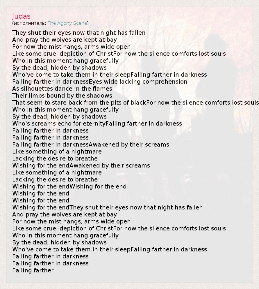 Like some cruel depiction of ChristFor now the silence comforts lost souls