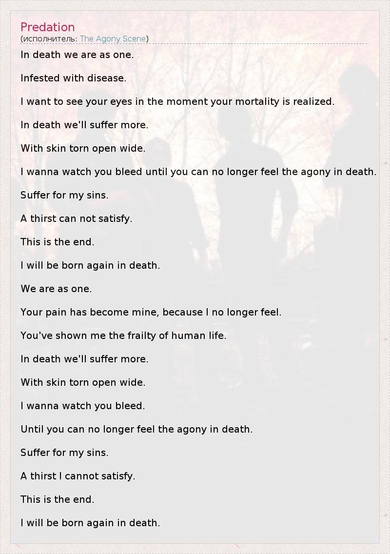 I wanna watch you bleed until you can no longer feel the agony in death.