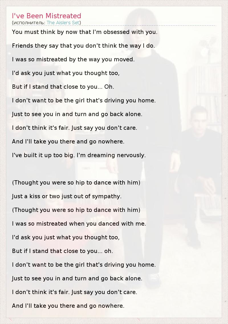 А как ты думаешь, о чем песня "I've Been Mistreated" ?