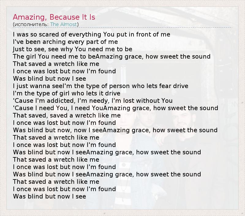 А как ты думаешь, о чем песня "Amazing, Because It Is" ?