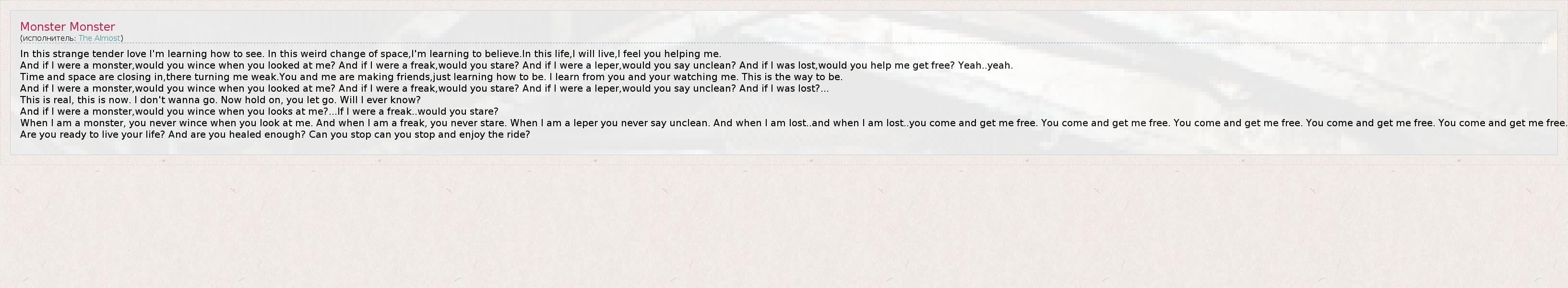 А как ты думаешь, о чем песня "Monster Monster" ?
