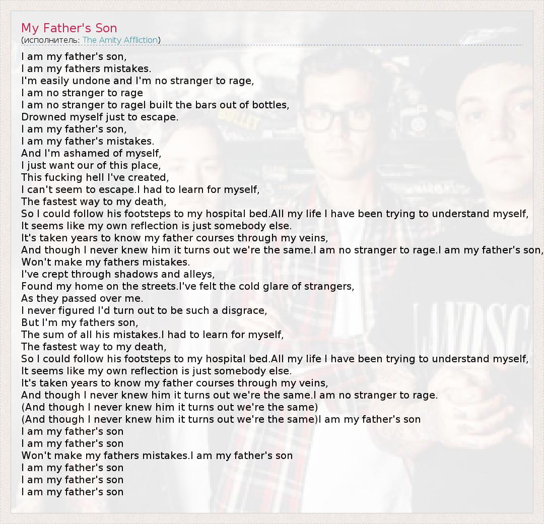Won't make my fathers mistakes.I am my father's son