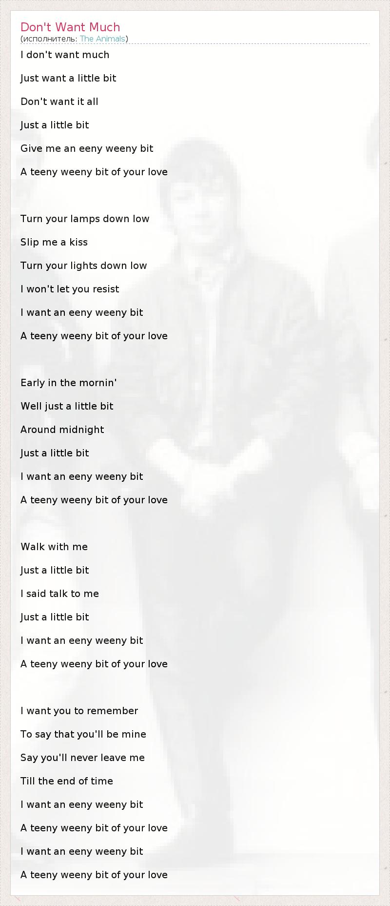 А как ты думаешь, о чем песня "Don't Want Much" ?