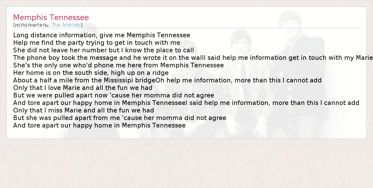 And tore apart our happy home in Memphis TennesseeI said help me information, more than this I cannot add