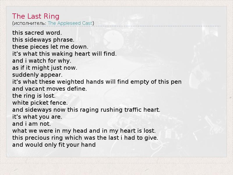 А как ты думаешь, о чем песня "The Last Ring" ?