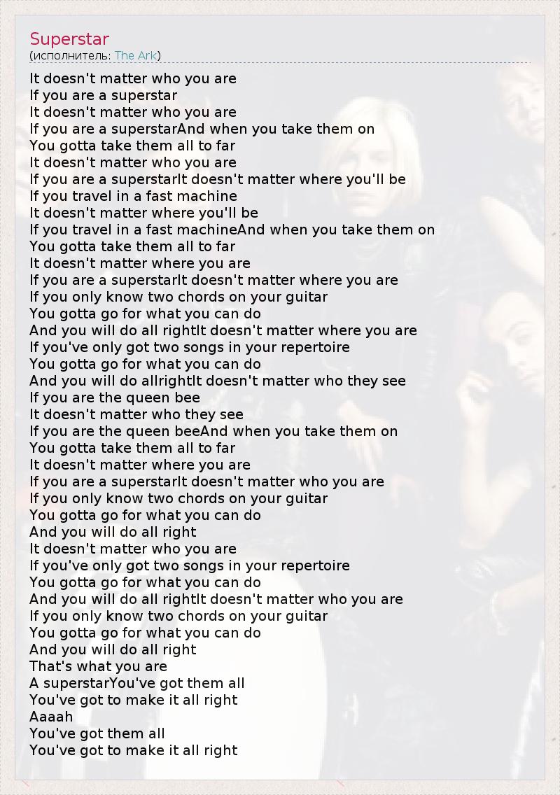 Это интересно:The Ark – шведская группа, играющая в стиле glam rock. Группа была образована в 1991 году Ola Salo, Jepson, и Lasse ‘Leari’ Ljungberg. Martin Axén присоединился к группе в 1997 году, а Sylvester Schlegel в 1999. Jens Andersson последним вступил в группу в октябре 2006. Большинство песен написано солистом Ola Salo, причем многие достаточно противоречивы, особенно ранние. К примеру, в 2002 году вышла... продолжение