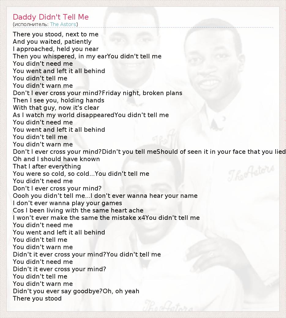 А как ты думаешь, о чем песня "Daddy Didn't Tell Me" ?