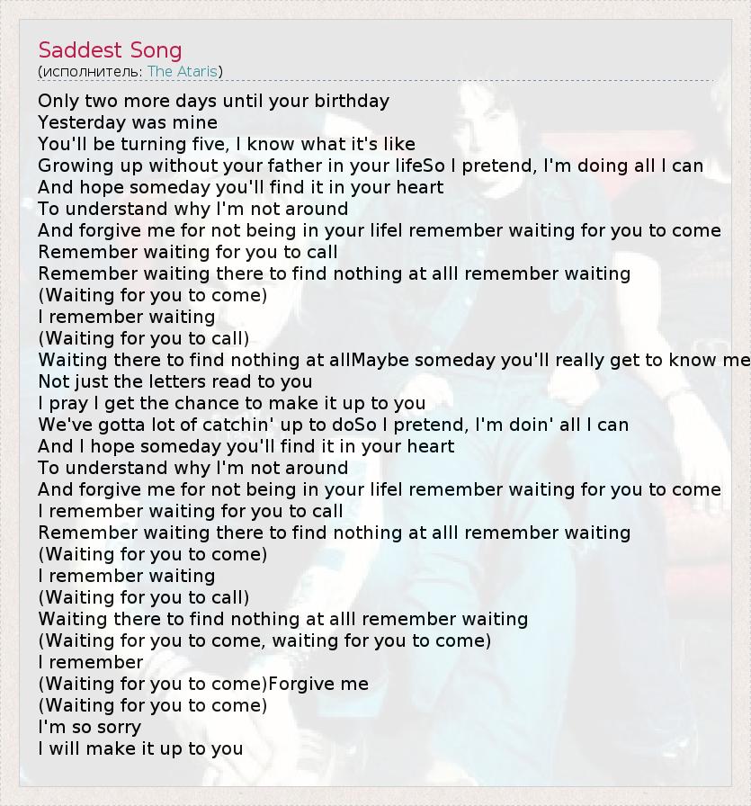 А как ты думаешь, о чем песня "Saddest Song" ?