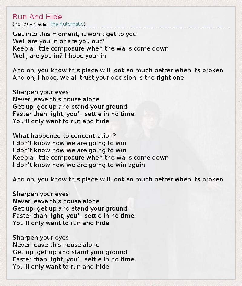 А как ты думаешь, о чем песня "Run And Hide" ?
