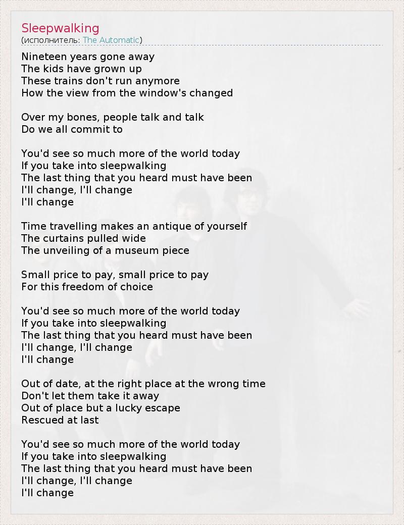 А как ты думаешь, о чем песня "Sleepwalking" ?