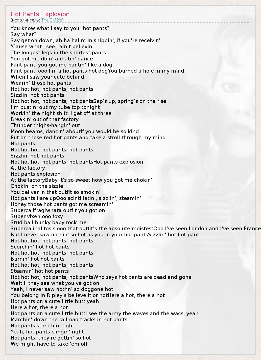А как ты думаешь, о чем песня "Hot Pants Explosion" ?