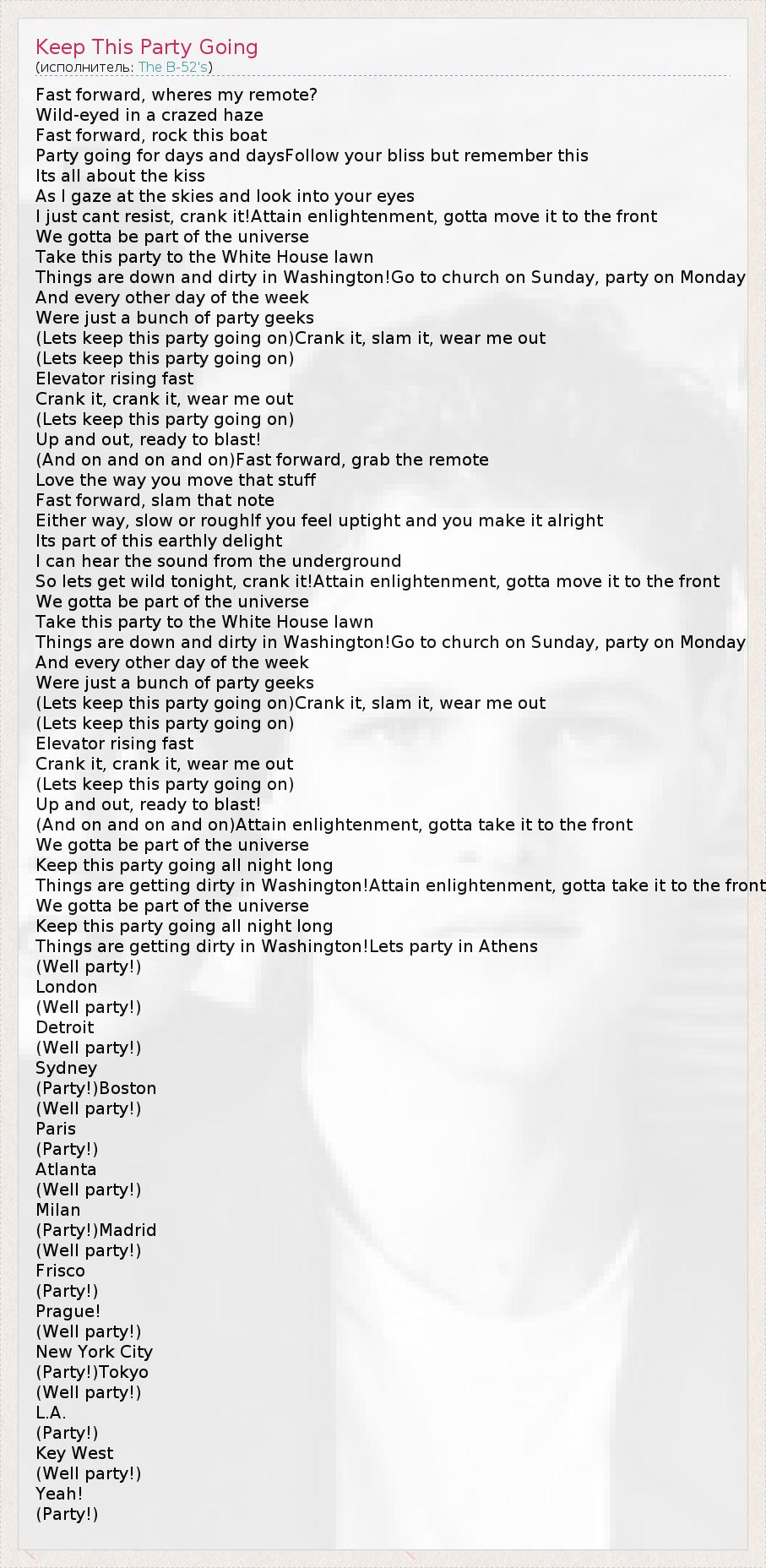 А как ты думаешь, о чем песня "Keep This Party Going" ?