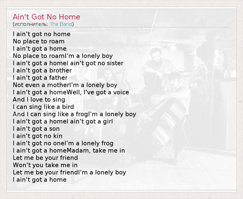 А как ты думаешь, о чем песня "Ain't Got No Home" ?