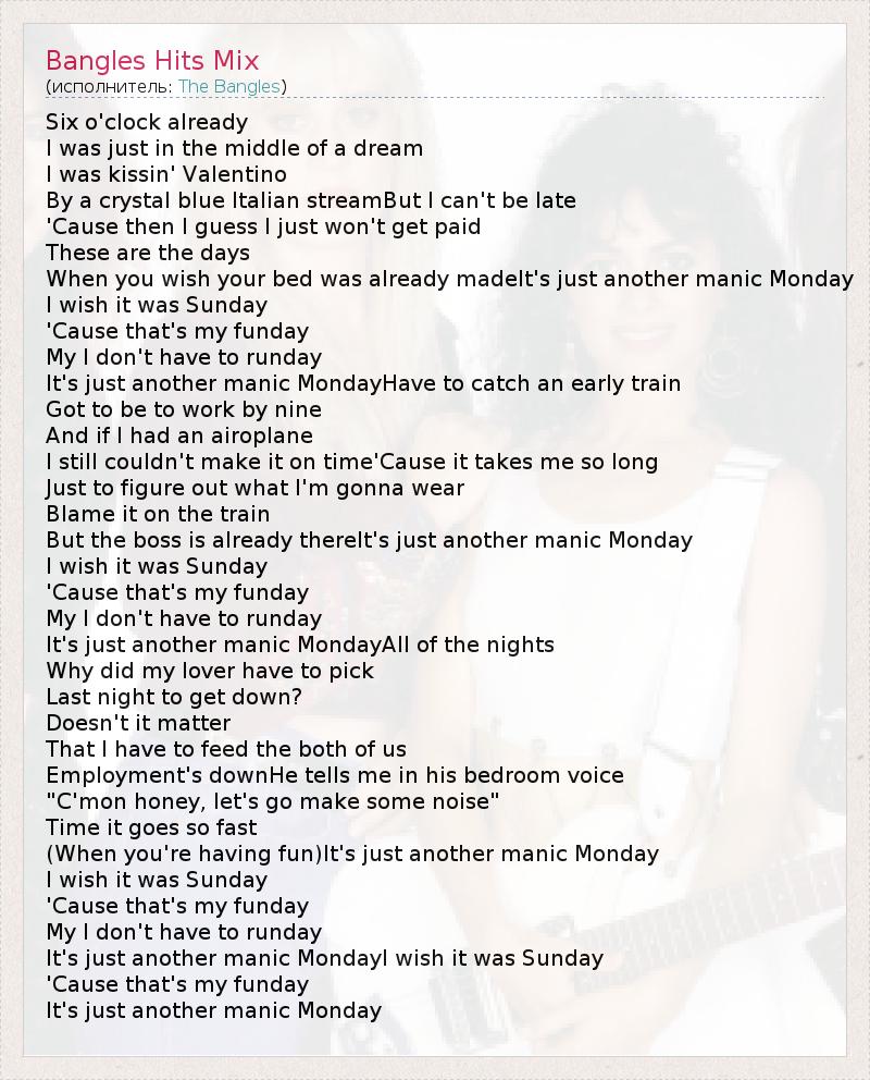 It's just another manic MondayI wish it was Sunday