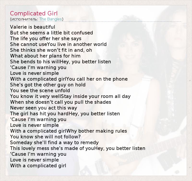 А как ты думаешь, о чем песня "Complicated Girl" ?