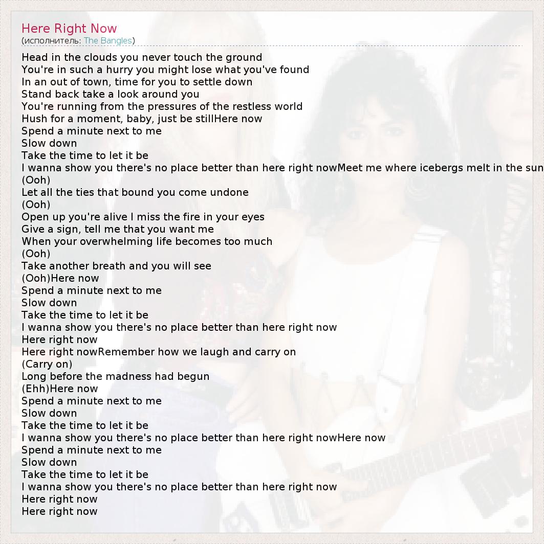 А как ты думаешь, о чем песня "Here Right Now" ?
