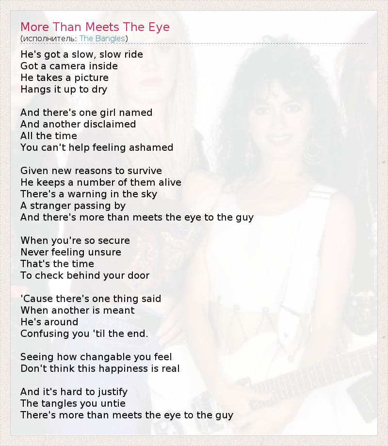А как ты думаешь, о чем песня "More Than Meets The Eye" ?