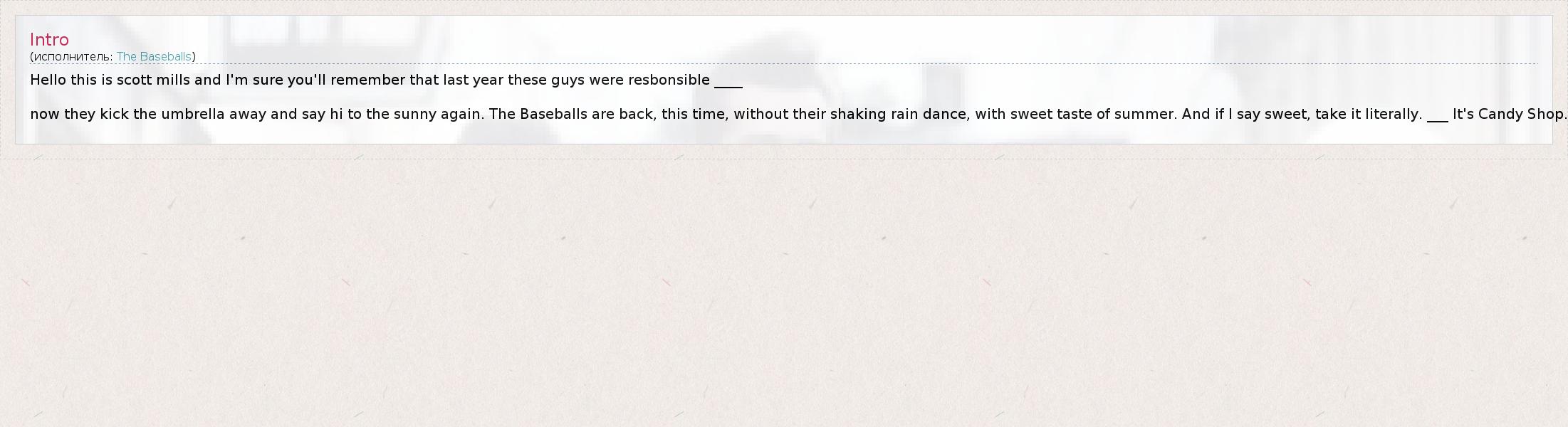 now they kick the umbrella away and say hi to the sunny again. The Baseballs are back, this time, without their shaking rain dance, with sweet taste of summer. And if I say sweet, take it literally. ___ It's Candy Shop.