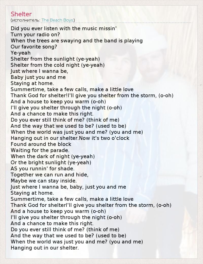 Thank God for shelterI'll give you shelter from the storm, (o-oh)