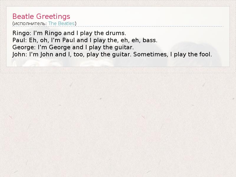 А как ты думаешь, о чем песня "Beatle Greetings" ?