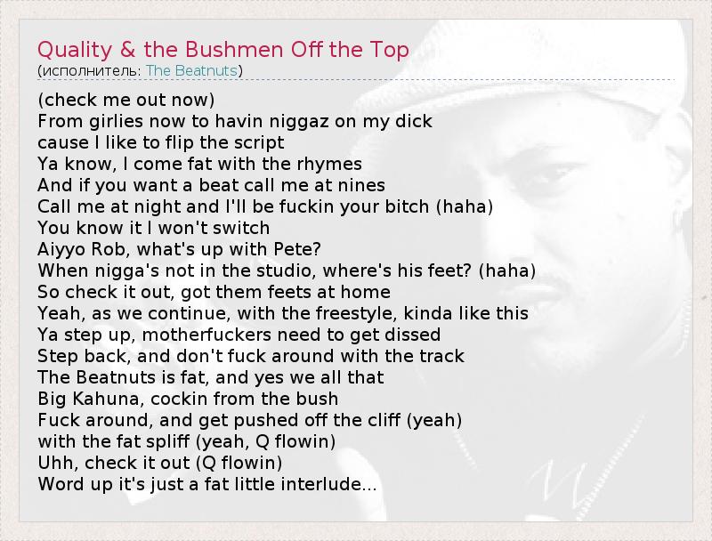 ГлавнаяИсполнителиThe BeatnutsQuality & the Bushmen Off the Top