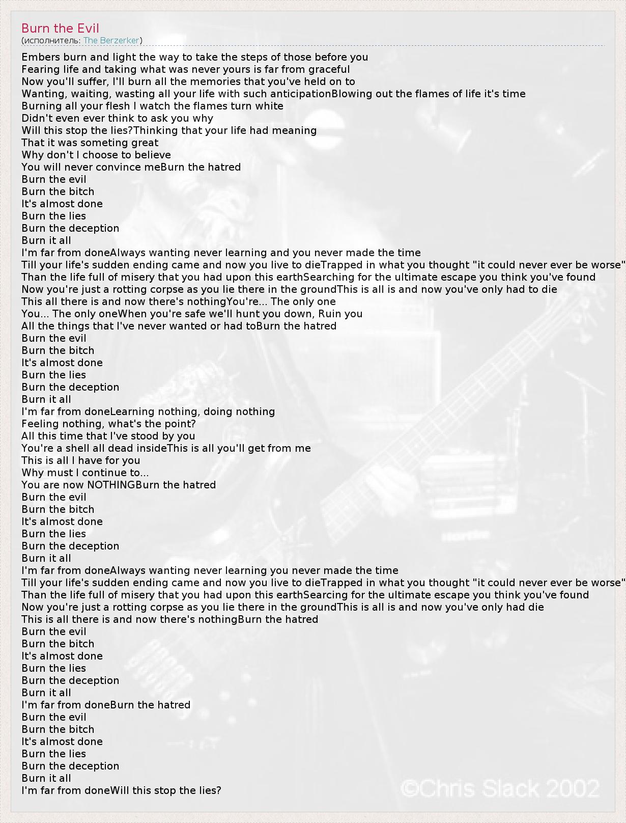 А как ты думаешь, о чем песня "Burn the Evil" ?