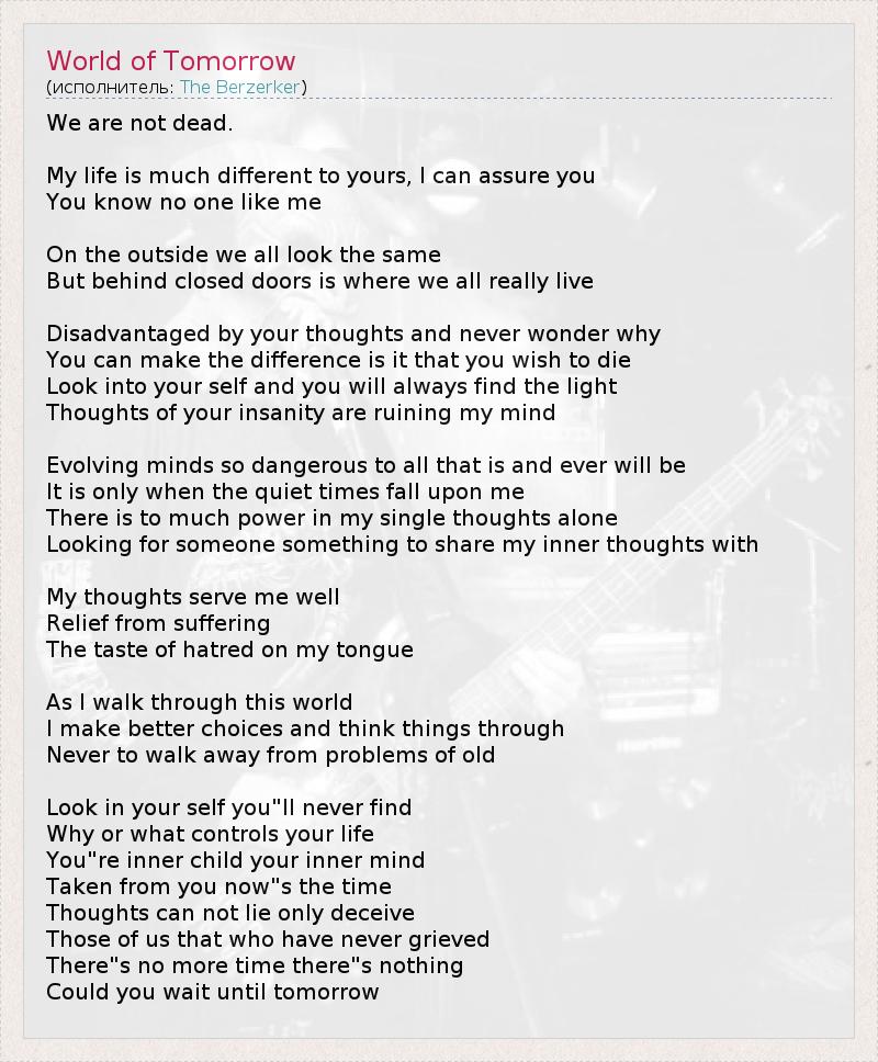 А как ты думаешь, о чем песня "World of Tomorrow" ?