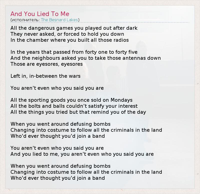 А как ты думаешь, о чем песня "And You Lied To Me" ?