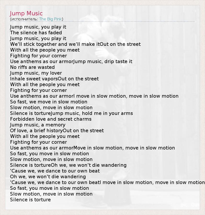 'Cause we, we dance to our own beatI move in slow motion, move in slow motion