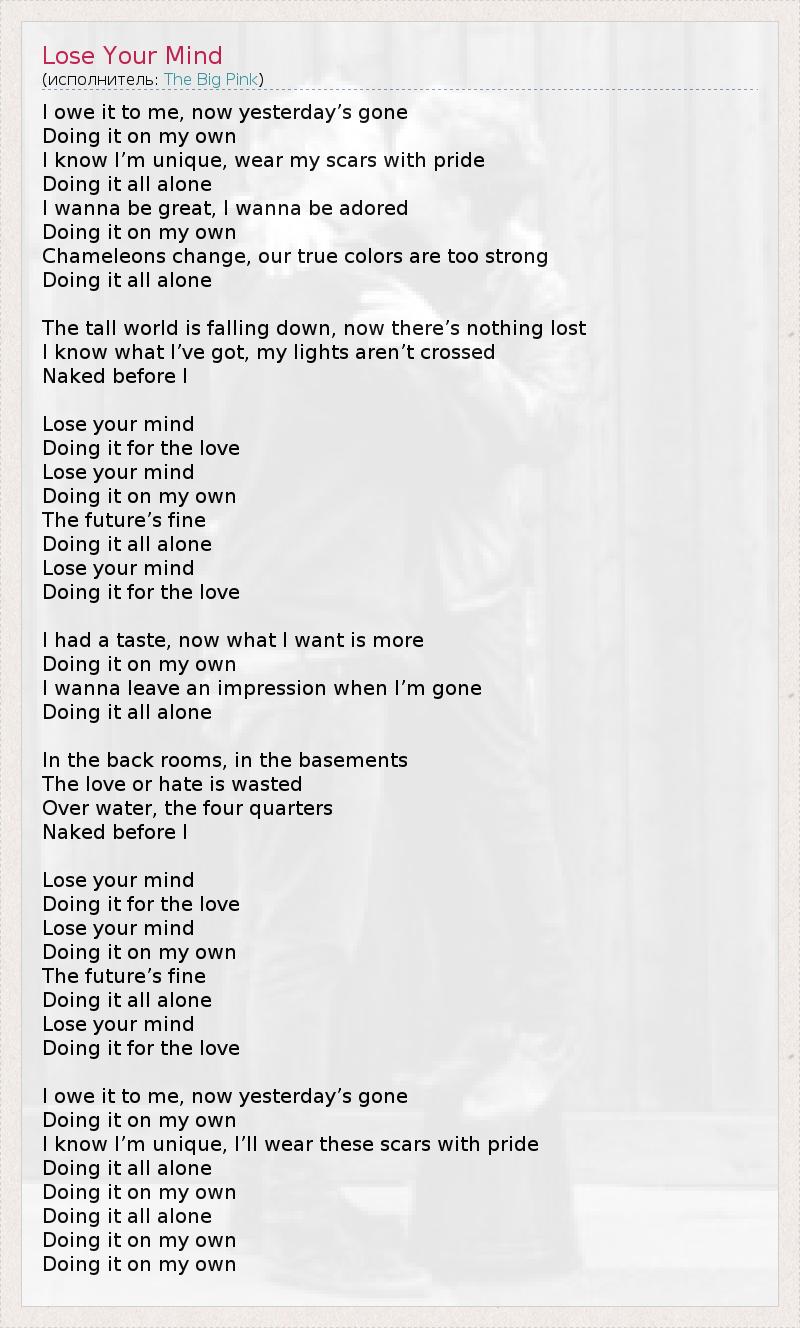 А как ты думаешь, о чем песня "Lose Your Mind" ?