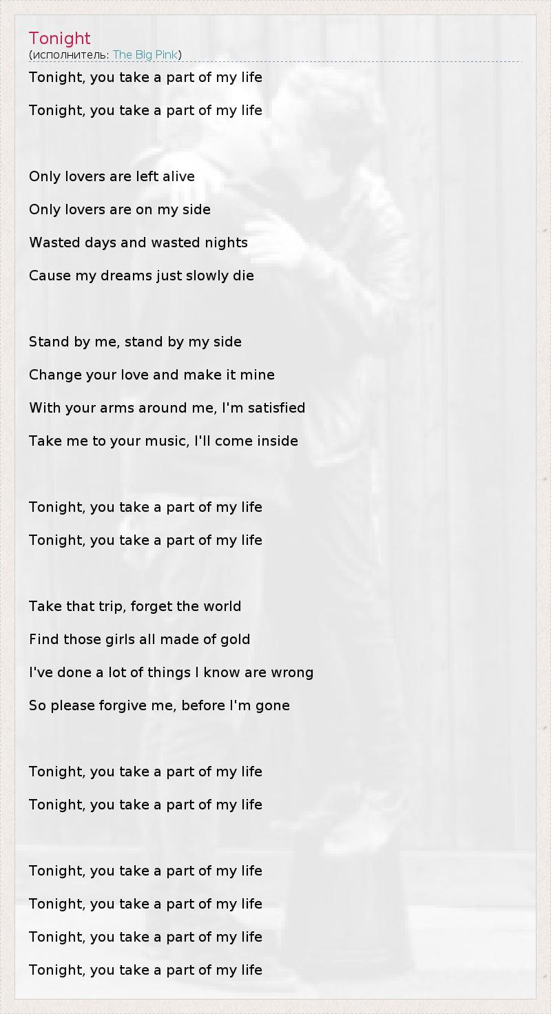 Tonight, you take a part of my life