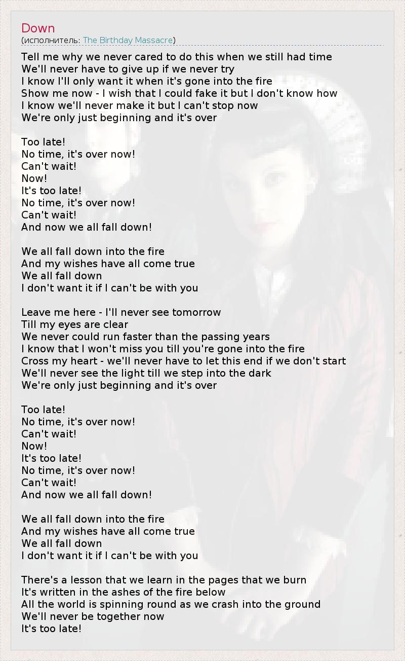 Я знаю, что не стану по тебе скучать, пока ты не сгинешь в огне.